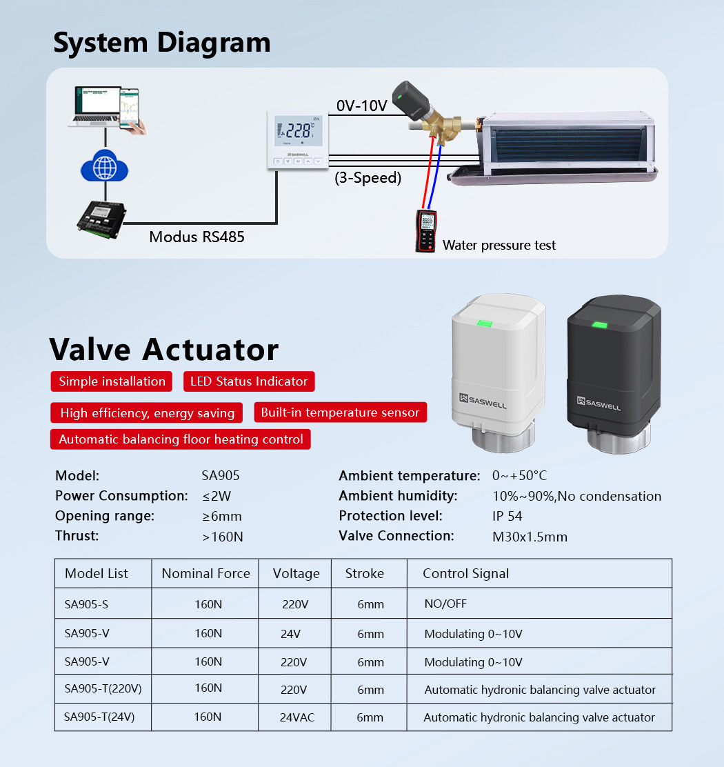 SASWELL PICV proporciona un control preciso del caudal y un equilibrado hidráulico automático para sistemas de climatización modernos. Mantiene un caudal constante a presiones variables, garantizando el confort y la eficiencia energética sin necesidad de equilibrado manual. Ideal para fan coils, unidades de tratamiento de aire y calefacción por suelo radiante.