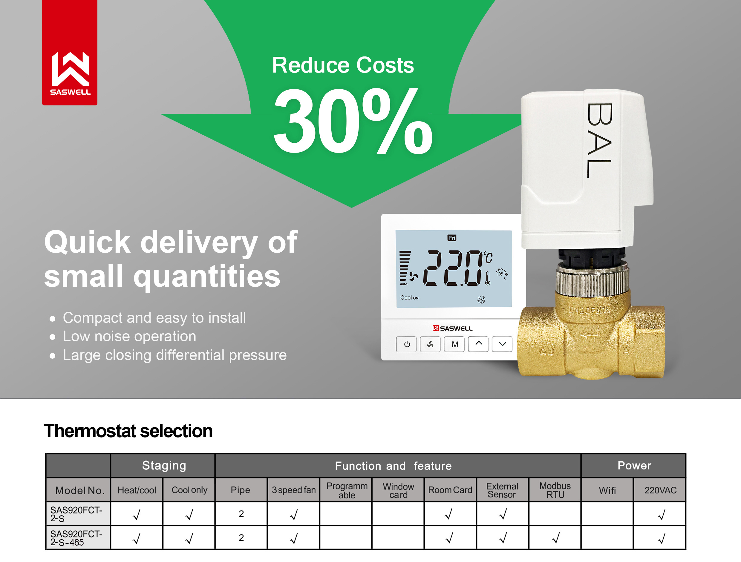 ¿Busca una solución de control de climatización (HVAC) fiable y rentable? Nuestro termostato y válvula actuadora FCU le ayuda a ahorrar hasta un 30 % y a garantizar un rendimiento estable.