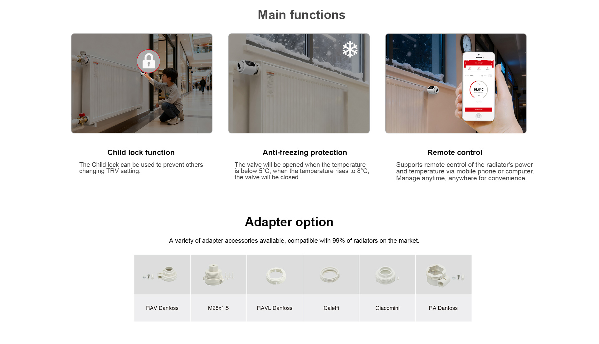 Equipado con protección anticongelante, bloqueo infantil y funciones antical, ofrece programación inteligente de 7 días para una gestión energética eficiente y un mayor confort. Ideal para hogares, oficinas, hoteles y sistemas de calefacción centralizados.