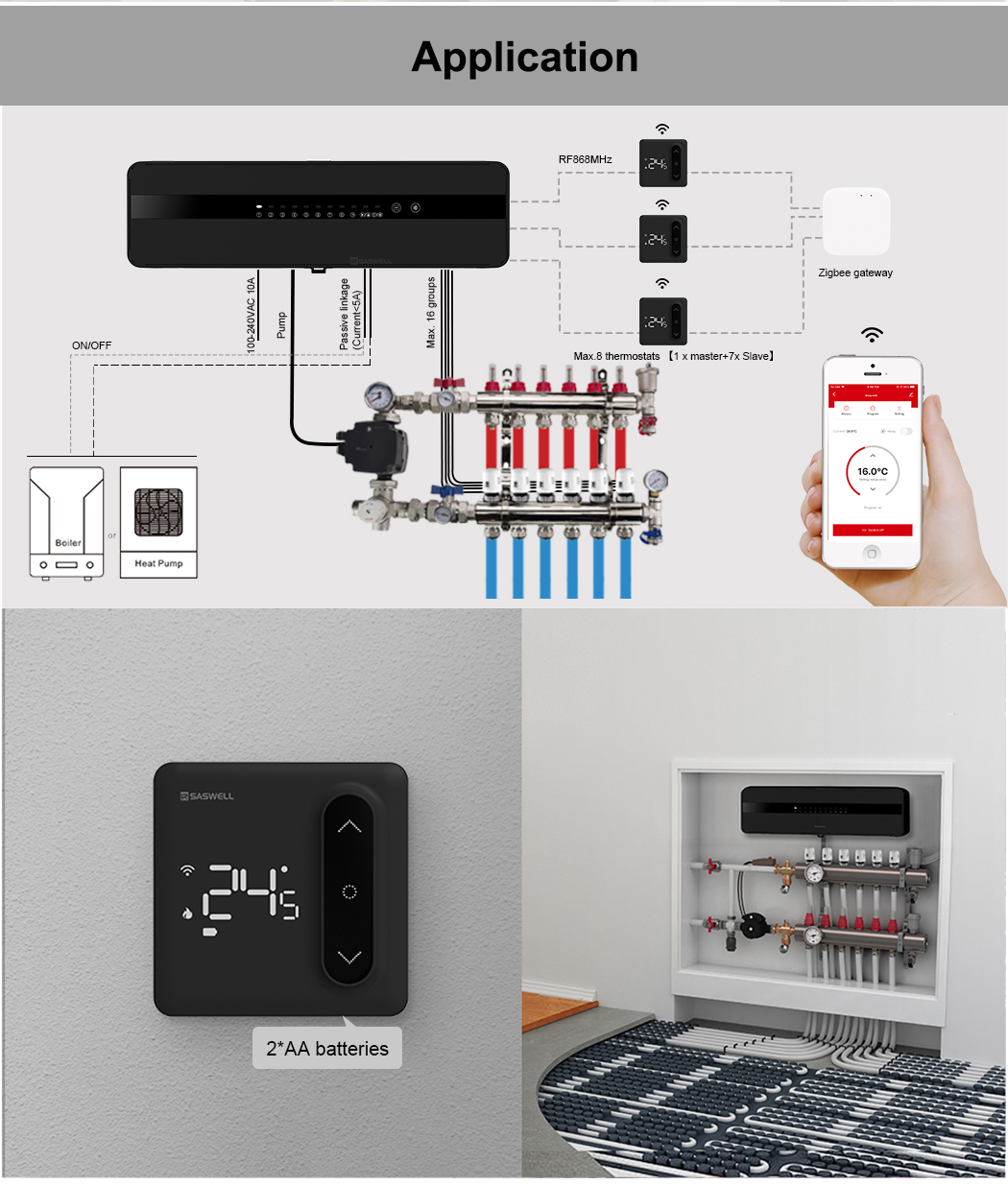 El sistema inalámbrico de calefacción y refrigeración radiante SASWELL está diseñado para edificios residenciales y comerciales modernos y ofrece una compatibilidad perfecta con calderas y bombas de calor. Puede controlar tanto la calefacción como la refrigeración radiante, garantizando un ambiente interior confortable durante todo el año. Comunicación RS-485 Se integra fácilmente con sistemas de automatización de edificios (BAS) y plataformas de hogares inteligentes, satisfaciendo las necesidades de contratistas y distribuidores en diversas aplicaciones.